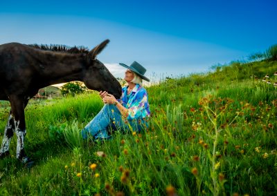 In Oklahoma, the desert-native burros with wild instincts were difficult to contain. Extremely steep, rocky, rugged Oklahoma red dirt ridges couldn’t even contain the ridge-jumping burros. Katie and husband, Michael Horntvedt, spent that first summer tracking and finally gathering the wild burros. Today, the burros can be found grazing alongside Lazy KT Ranch’s Angus cows, enjoying the native pastures.